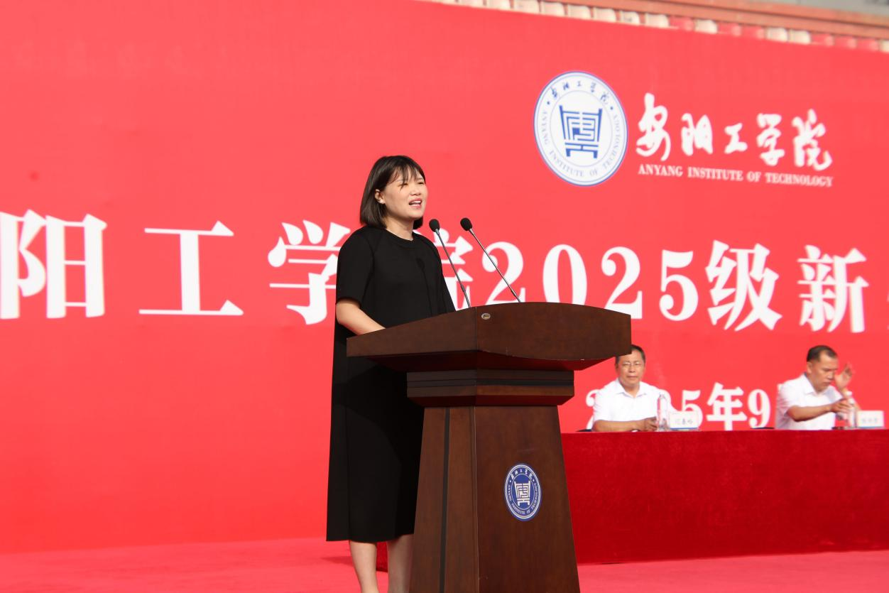 副校长闫春岭主持开学典礼。典礼仪式上,教师代表吴晶晶、高年级学生代表张涵、新生代表胡钰埼、优秀校友代表孟瑾分别发言。